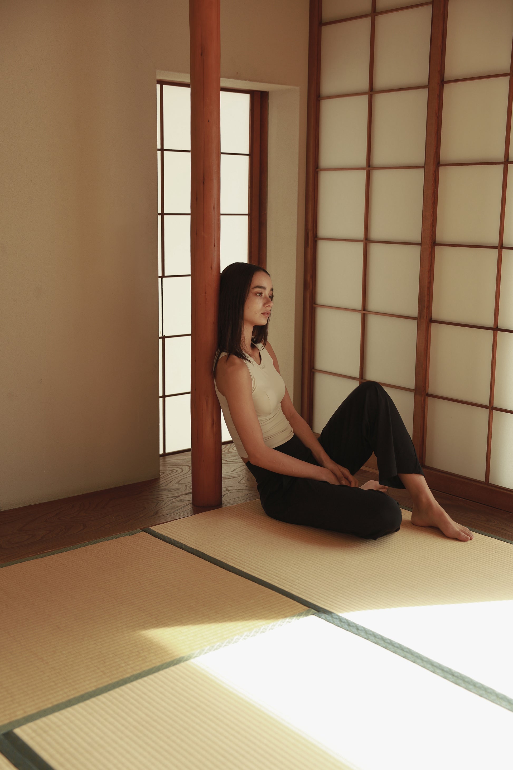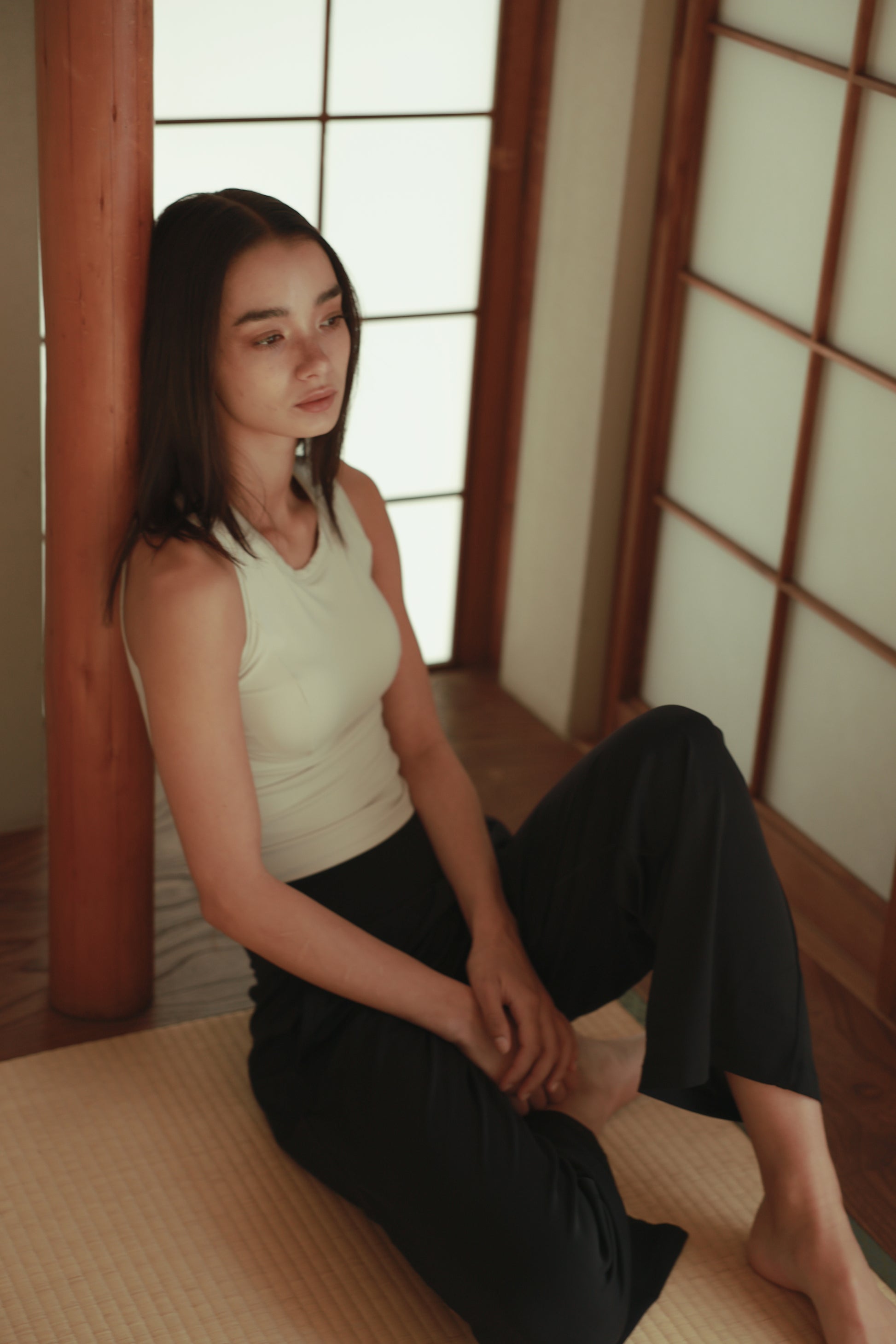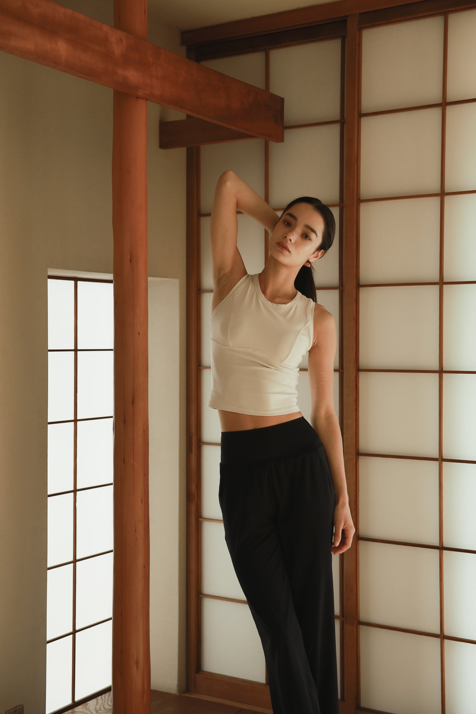 程よいクロップ丈でウエストラインをきゅっと見せる、ミニマルなタンク。胸下のカーブ切り替えとダーツで立体感を出しつつフィット。ネックは詰まりすぎないクルーで優しい着心地を重視しました。