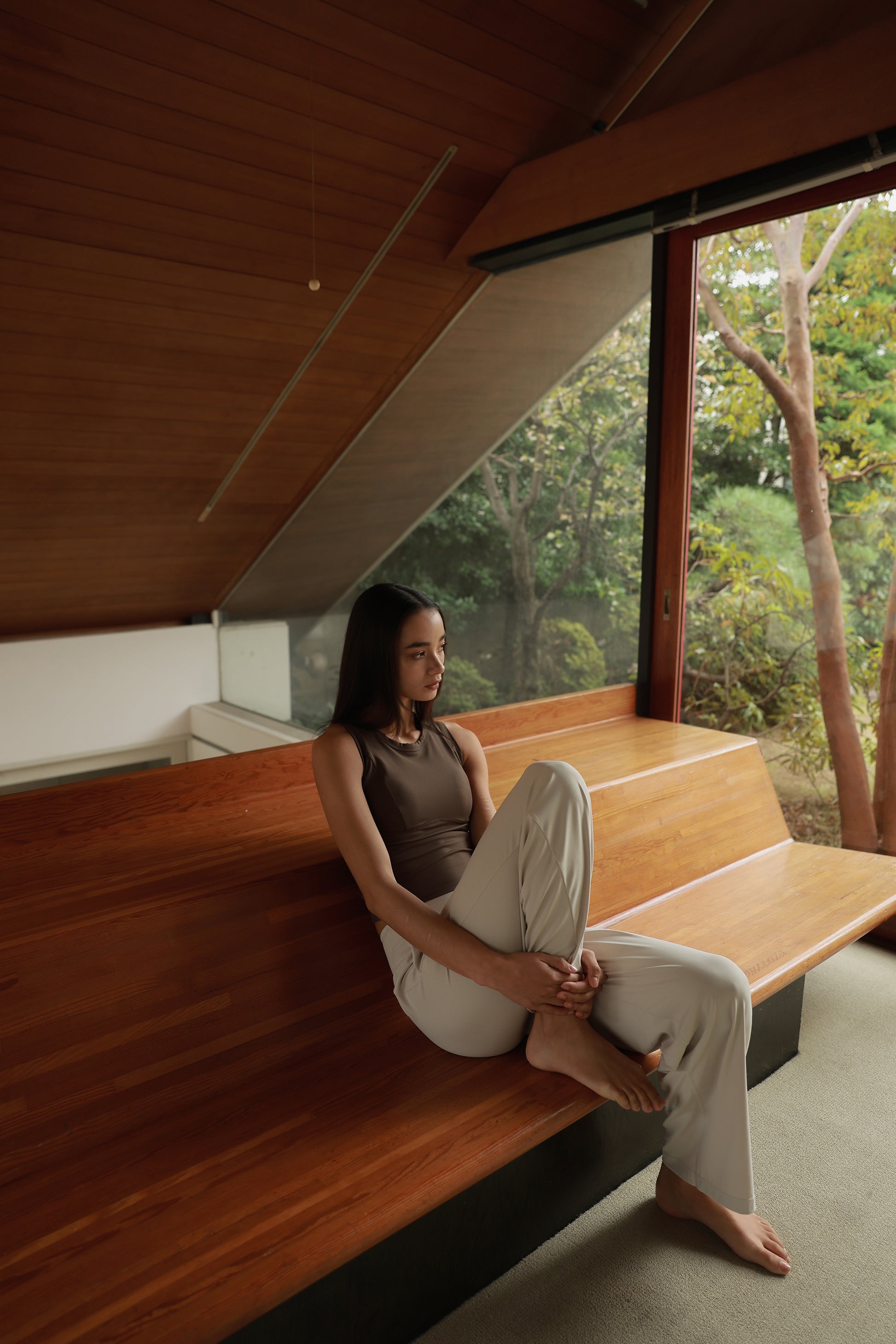 程よいクロップ丈でウエストラインをきゅっと見せる、ミニマルなタンク。胸下のカーブ切り替えとダーツで立体感を出しつつフィット。ネックは詰まりすぎないクルーで優しい着心地を重視しました。