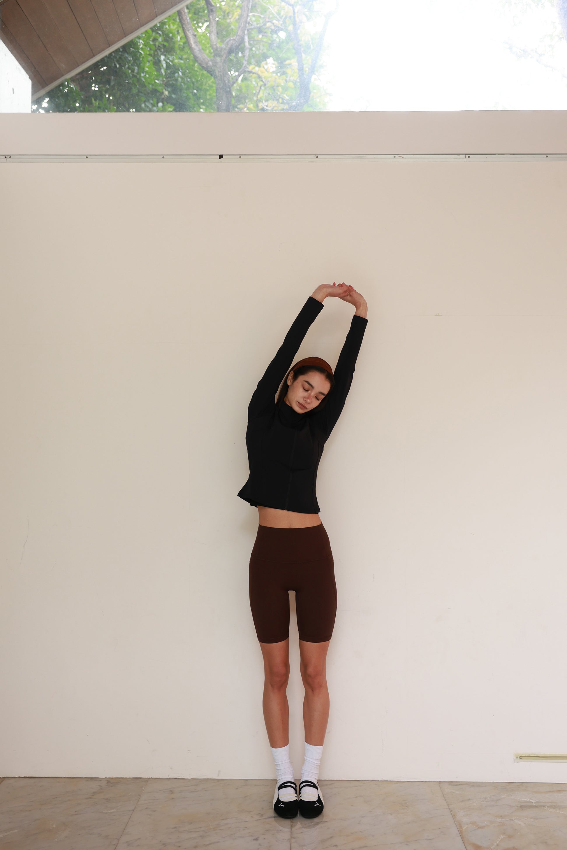 さらりとしたストレッチジャージーは動きに合わせて4WAYと伸びやか。軽やかかつ保温機能が備われ、速乾性も早いためワークアウト後も快適です。首元を包むスタンドカラーは風よけ、日よけ、冷房対策にも◎。コンパクトに丸めて旅先やジムバッグにも忍ばせることが可能。